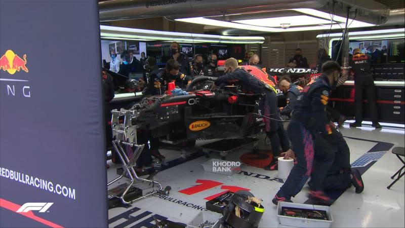 دور گرم کردن پشت خودروی ایمنیدر خلال توقف ماشینها، تیم ردبول با