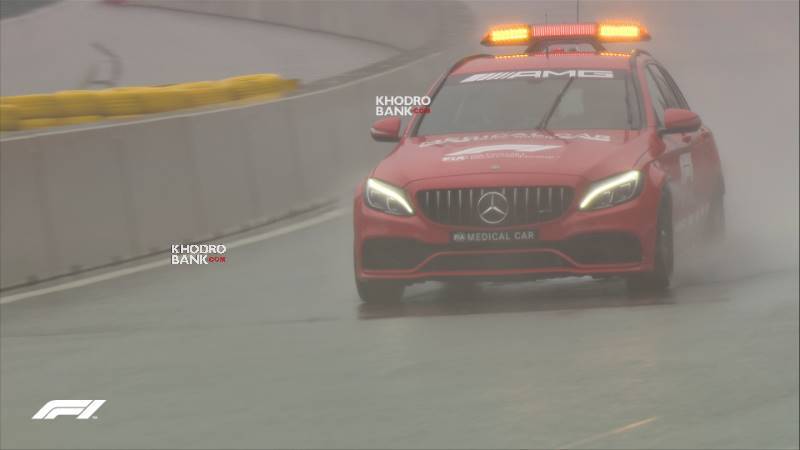 بعد از 4 دور پشت خودروی ایمنی به علت سردی هوا و تاثیر بر روی عملکرد موتور و نا مصاعد بودن وضعیت پیست، پرچم قرمز نمایش داده شد و خودروها به پیت برگشتند.