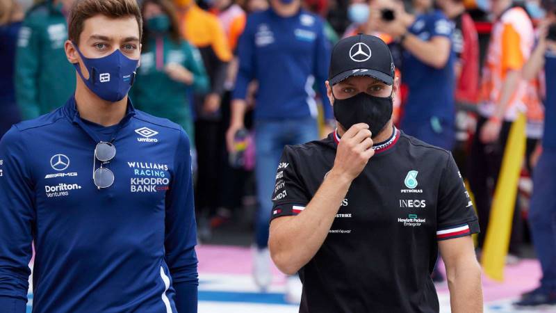 جورج راسل - والتری بوتاس گرندپری بحرین 2020اگرچه مدیران مرسدس در آن وقت از ادامه راه با بوتاس و همیلتون صحبت کردند، اما نشانهها و عملکرد نه چندان خوب بوتاس در فصل 2020 نوید این را میداد که شاهد جوانگرایی در تیم خواهیم بود.