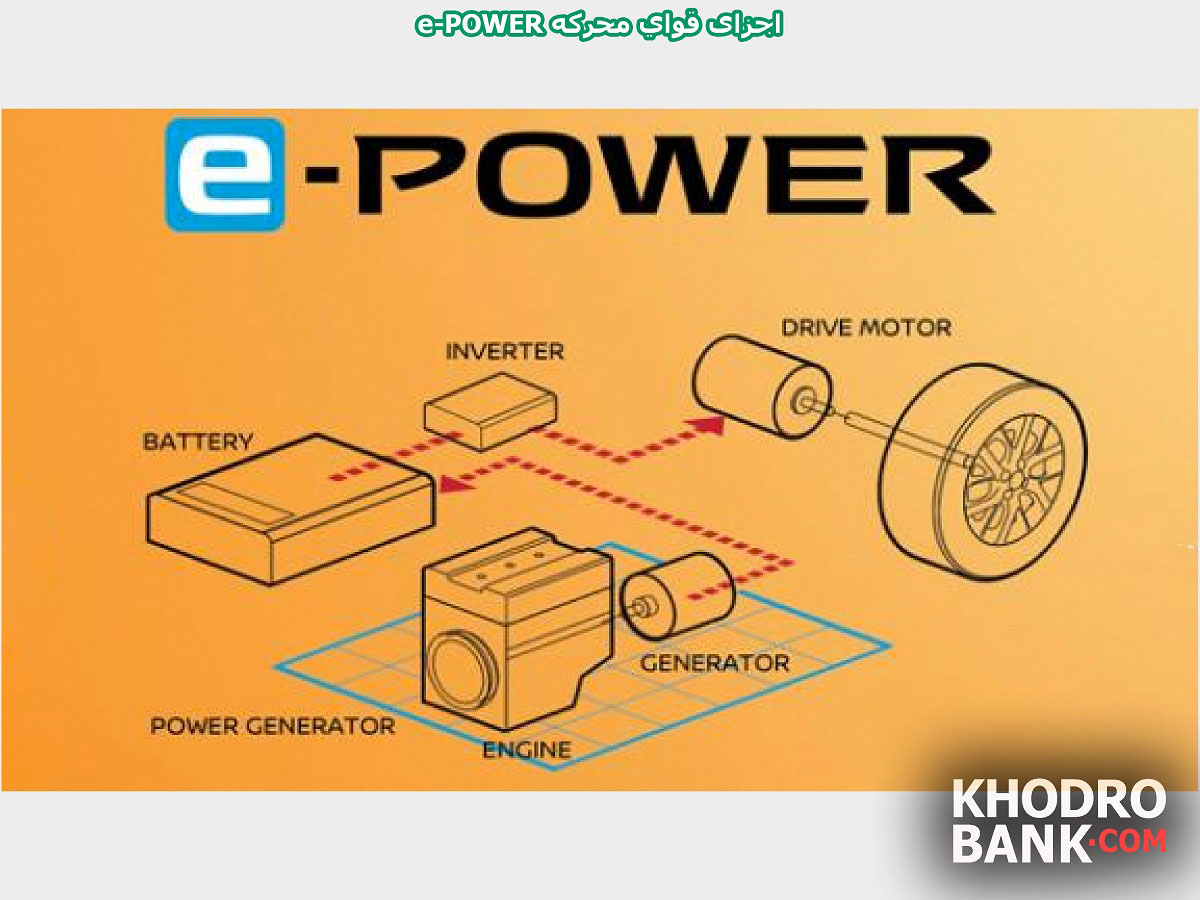 قوای محرکه e-POWER از سه بخش اصلی تشکیلشده است، بخش تولید انرژی الکتریکی که شامل موتور درونسوز و ژنراتور است، بخش محرک که شامل الکتروموتور و یکسو کننده است و بالاخره بخش ذخیره انرژی الکتریکی که همان باطریها هستند.