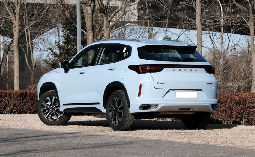 اکسید جدید از لحاظ ظاهری تفاوت چندانی با مدل بنزینی ندارد. چراغهای جلو متشکل از چهار چراغ LED بوده و چراغهای عقب به سبک طراحیهای مدرن امروزی به هم متصل شدهاند و زیر آنها لوگوی EXEED تعبیه شده است. نمای جلوی خودرو شامل یک جلوپنجره بسیار بزرگ میشود و حتی سپر نیز دارای ورودی هوا است.