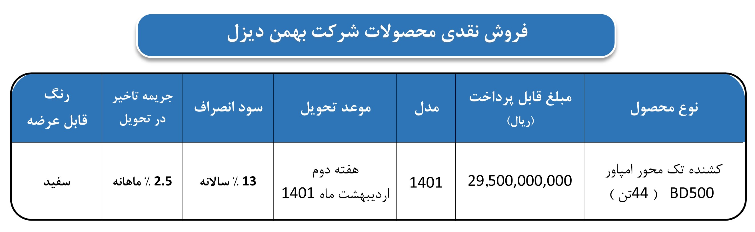 شرکت بهمن دیزل بزرگترین تجاری ساز کشور از فروش نقدی کشنده امپاور BD500 خبر داد.