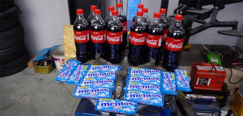 ماشین مورداستفاده در این آزمایش، یک لادای قدیمی است. گروه سعی کرده تا با یک روکش سفارشی، علاوه بر پوشاندن زنگزدگیهای ماشین، کانال یوتیوب Garage54 را تبلیغ کند. همانطور که در فیلم زیر مشاهده میکنید، با گاز حاصل از ترکیب نوشابه و نعناع عملا نمیتوان لاستیک ماشین را باد کرد!