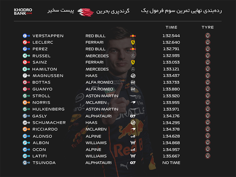 نتایج رانندگان در تمرین سوم - سخیر 2022