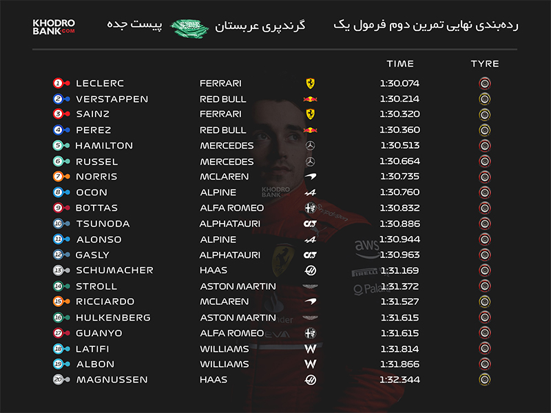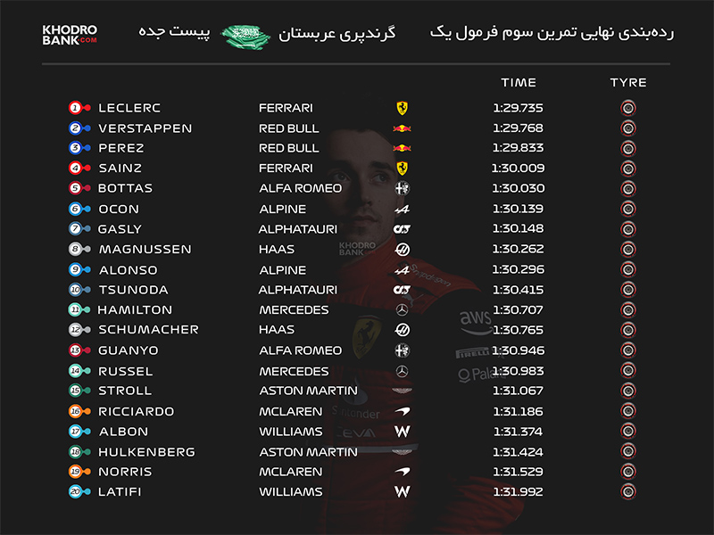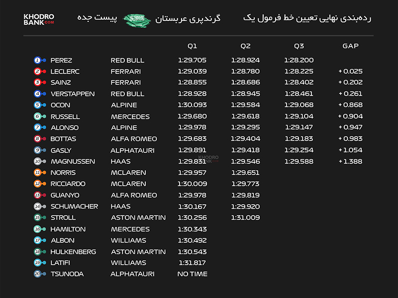 جدول ردهبندی رانندگان در دور تعیین خط گرندپری عربستان 2022