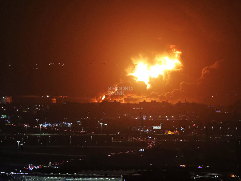 دود ناشی از انفجار در تاسیسات آرامکو شعلههای حاصل از سوختن مخازن بعد از انفجار