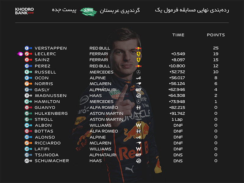 جدول ردهبندی رانندگان گرندپری عربستان 2022