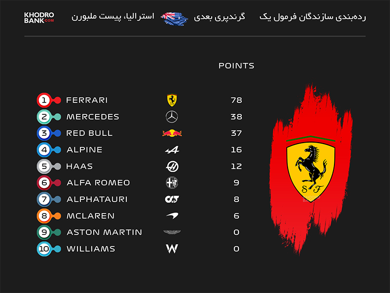 جدول ردهبندی سازندگان فصل 2022