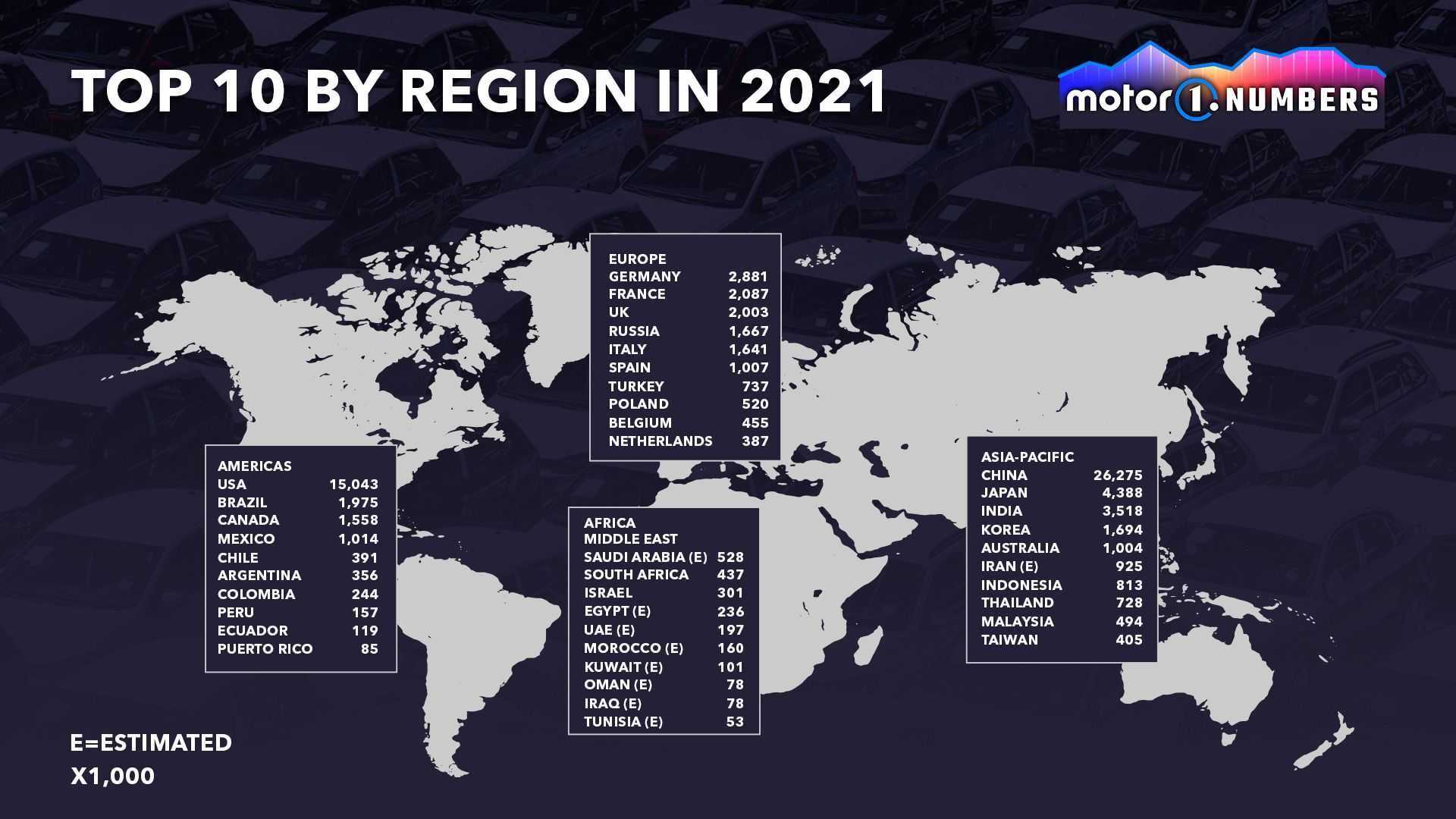 چین همچنان بزرگترین بازار خودرو در سطح جهان است. 26.3 میلیون دستگاه خودرو ط سال 2021 در این کشور به فروش رسید که 4 درصد نسبت به سال 2020 و 6 درصد نسبت به سال 2019 رشد را نشان میدهد. صنعت خودرو چین برنده بحران اقتصادی دو دهه قبل است و با وجود سختگیریهای دولت مرکزی برای افزایش تولید خودروهای برقی، همچنان این بازار رو به رشد است.