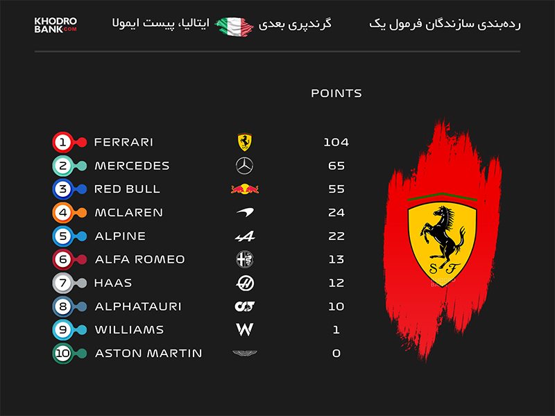 جدول ردهبندی سازندگان در فصل 2022