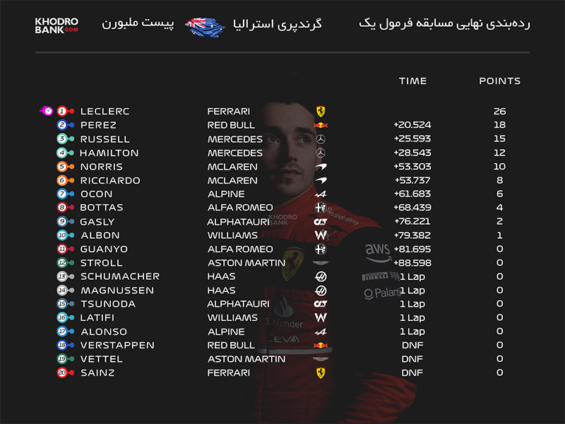 جدول ردهبندی رانندگان در گرندپری استرالیا 2022