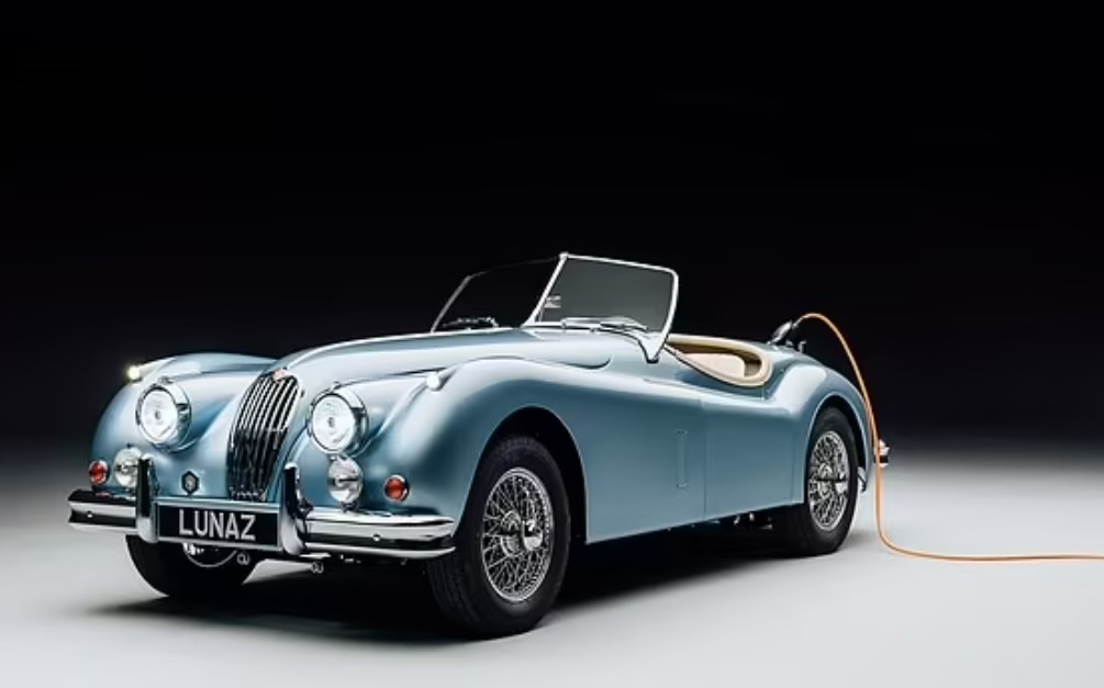 این جگوار کروکی مدل ۱۹۵۴ رنگ آبی خاصی دارد و یادآور خودروی برقی مشهور مراسم ازدواج شاهزاده هری و مگان مارکل در بریتانیا است.