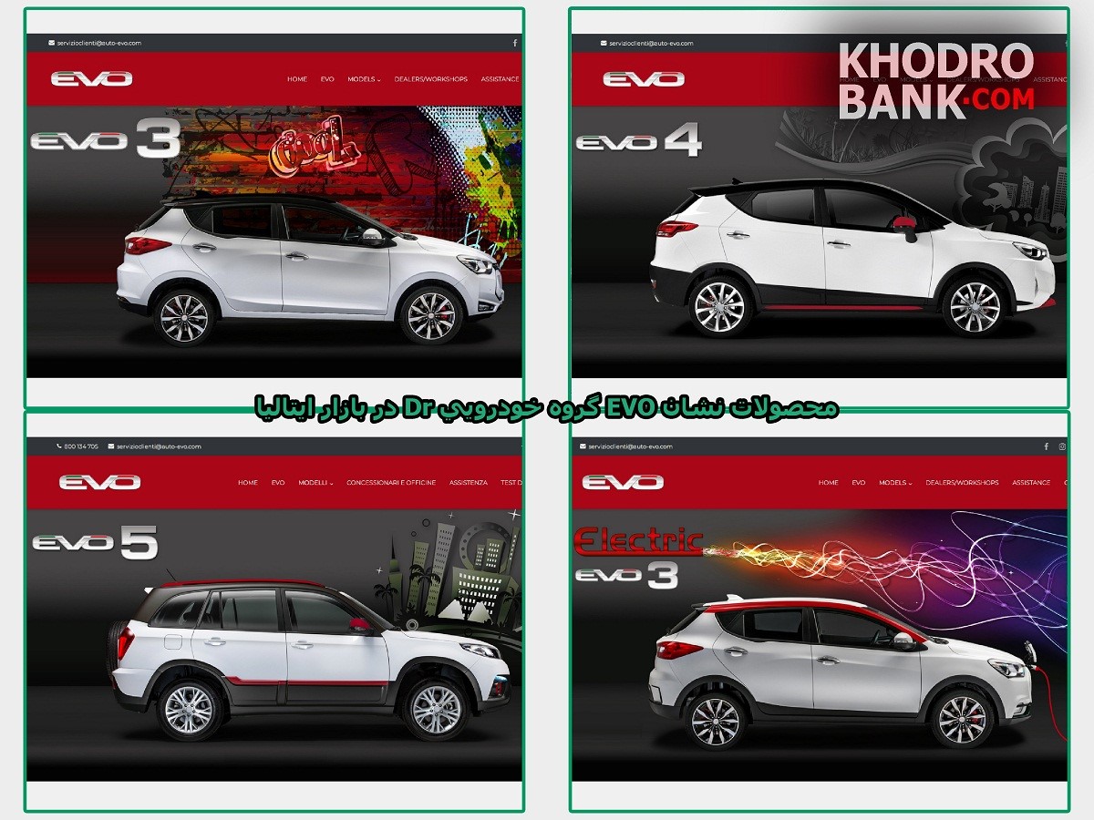 Dr 6.0در سال 2020 یعنی بعد از 13 سال فروش محصولات چری و جک در ایتالیا گروه خودرویی Dr تصمیم گرفت تا نشان EVO را بهعنوان زیرشاخه اقتصادی خود معرفی کند. درنتیجه این تصمیم خودروهای جک S2,S3,S2 Electric و خودرو تیگو 3 با نامهای EVO3, EVO3 Electric, EVO4, EVO5 به بازار ایتالیا عرضه میشوند.