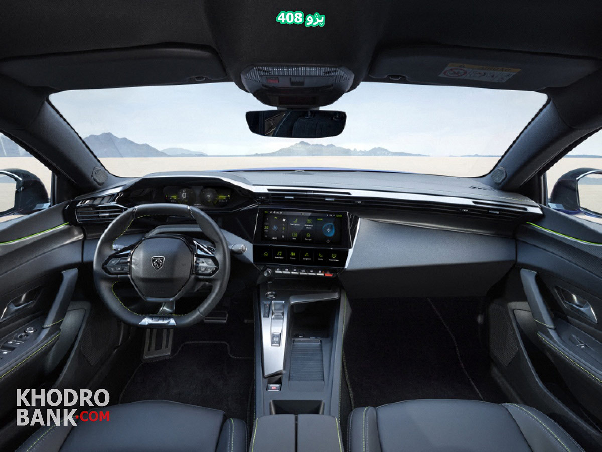 نمای بالای پژو 408 جدیداز لحاظ فضای داخلی پژو 408 جدید شبیه پژو 308 است ولی دیگر خبری از نمونههای ساده نیست. کماکان ساختار i-Cockpit حفظشده و پژو 408 جدید مجهز به دو مانیتور 10 اینچی خواهد بود، یکی برای پشت آمپر و دومی برای سامانه چندرسانهای. صندلیهای جلو میتوانند به تنظیمات برقی و ماساژ دهنده مجهز باشند. سامانه صوتی در نمونههای با امکانات بیشتر از شرکت Focal است و 10 بلندگو دارد. سایر امکانات پژو 408 جدید عبارتاند از: 4 دوربین و سامانه نمای 360 درجه، سقف پانورامیک، سامانه دید در شب، کروز کنترل تطبیقی با 9 رادار، چرخهای آلیاژی 20 اینچی و الکتروموتور باز و بسته نمودن درب پنجم.