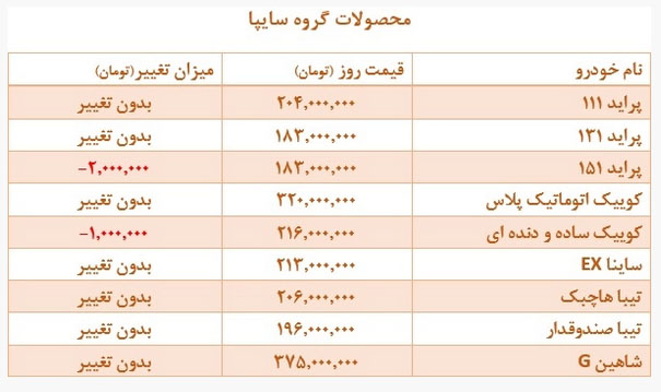 قیمت سایپا