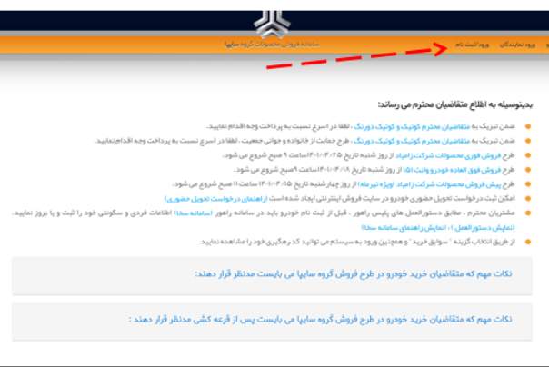 تکمیل وجه و اتمام فرآیند ثبت نام سپس با ورود به سایت گروه صنعتی ایران خودرو با ورود نام کاربری و رمز عبور فرآیند ثبت نام خود را تکمیل کنند.