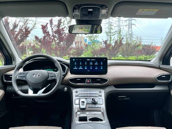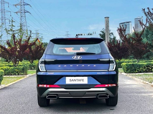 نمای عقبی فیس لیفت هیوندای سانتافه جدید از نظر فضای داخلی، قسمت کنترل مرکزی در زیر کنسول مرکزی ارتقا یافته است و دکمههای فیزیکی زیادی از جمله سیستم سرگرمی، کنترل تهویه مطبوع، حالت رانندگی و تنظیمات صندلی در کنسول جدید دیده میشود. خودروی جدید همچنان از یک صفحه کنترل مرکزی ایستاده با قابلیت کنترل راه دور بهره میبرد. علاوه بر این، سیستم شناسایی اثر انگشت قبلی حذف شده است.