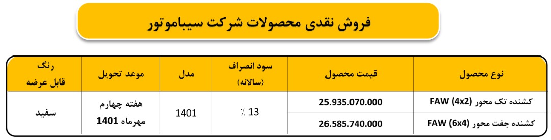 شرکت سیبا موتور در راستای پاسخ به نیاز بازار طرح جدید فروش محصولات خود را اجرا می کند.
