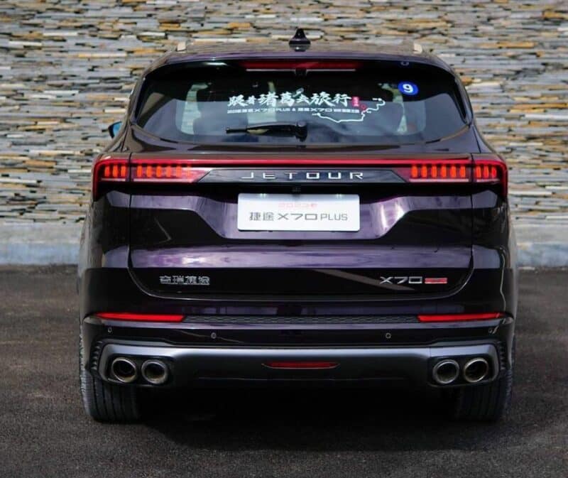 نمای عقب جتور X70 Plusولی داخل کابین از یک طراحی کلاسیک بهره میبرد و شامل روکش چرمی قرمزرنگ با تزئینات کرومی میشود. یک نمایشگر بزرگ یکپارچه در مقابل راننده به چشم میخورد که در واقع ترکیبی از دو نمایشگر 10.25 اینچی است. یک نمایشگر برای سیستم اطلاعات سرگرمی و دیگری برای نمایش اطلاعات حیاتی خودرو مورد استفاده قرار میگیرد.