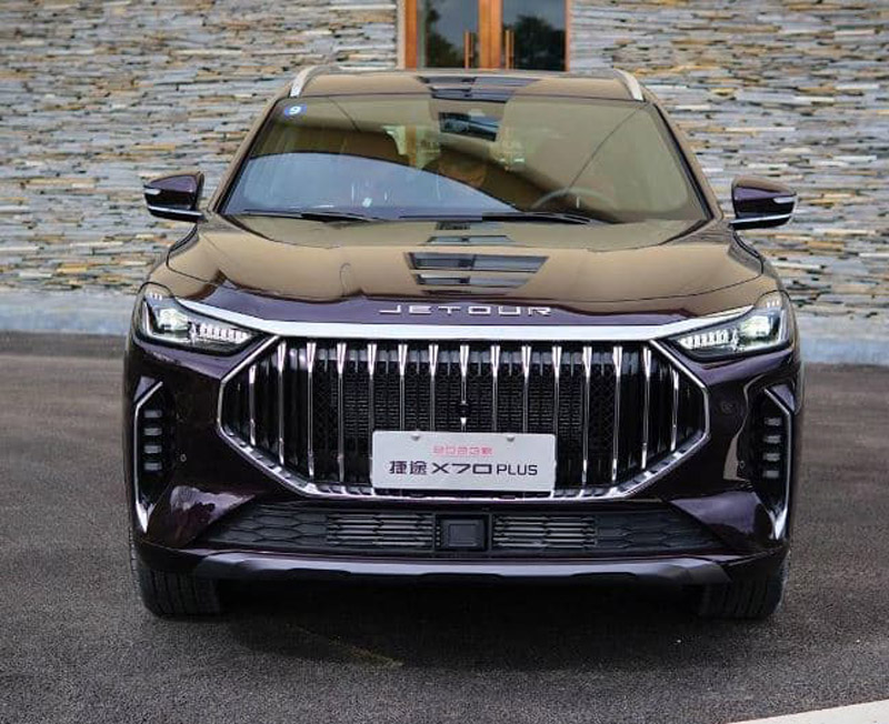 نمای جلو جتو ایکس ۷۰ پلاسنمای جلوی ماشین شامل یک جلوپنجره چندضلعی بزرگ میشود که برخلاف مدل 2022، دارای نوارهای کرومی با چیدمان عمودی است. چراغهای جلو نیز دارای گرافیک جذابی بوده و به واسطه یک نوار کرومی به یکدیگر و همینطور قسمت بالای جلوپنجره متصل شدهاند.