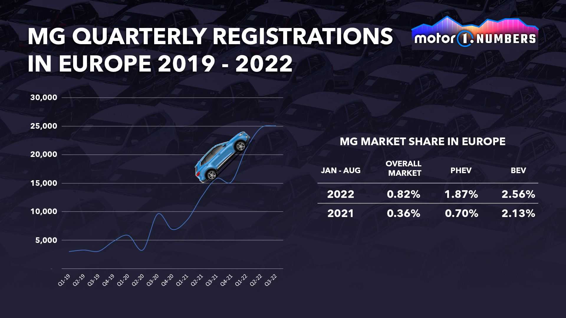 در حالی که سهم ام جی در کل بازار اروپا هنوز بسیار پایین است (۰.۸۲ درصد تا اوت)، این شرکت جایگاه بهتری در بازار خودروهای تمام برقی دارد. براساس اطلاعات ارائه شده توسط JATO، این شرکت بین ماههای ژانویه تا اوت ۲.۶ درصد از بازار خودروهای تمام برقی را به خود اختصاص داده است.