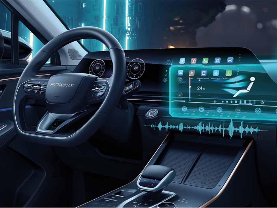 کابین فونیکس FX در عین مجلل بودن، به صورت مینیمالیستی طراحی شده و با تغییراتی نسبت به زبان طراحی پیشین، جلوه مدرنتری به خود گرفته است. کابین به نمایشگر دوگانه (Dual) با ابعاد ۱۰.۲۵ اینچی و کلاستر تمام دیجیتال با جزئیات کرومی مجهز است که به صورت سرتاسری بخش اعظم داشبورد را در بر میگیرد و هم اطلاعات مورد نیاز راننده و هم مباحث مربوط به سرگرمی و مالتی مدیا را پوشش میدهد. از مهمترین قابلیتهای کابین فونیکس FX، سیستم صوتی برند خوشنام سونی است.