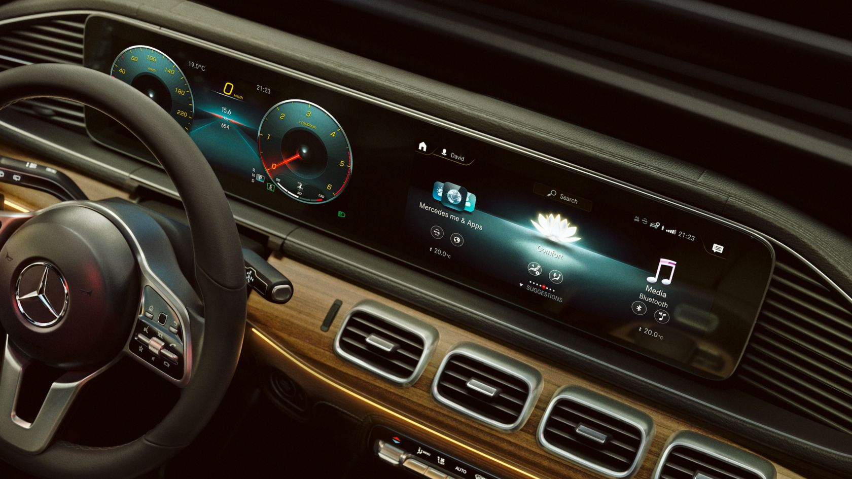 می توان مرسدس بنز را در ضمره ی اولین خودروسازانی قرار داد که با بکار گیری دو نمایشگر عریض در کنسول میانی نمای کاملا لوکس و مجلل را در محصولات خود گنجاندند، این نما از داخل کابین محصولات مرسدس بنز نه تنها آن هارو بسیار خاص و منحصر به فرد در مقایسه با محصولات رقبای هم وطن و کره ای و ژاپنی میکرد بلکه این امکان رو در اختیار رانندگان قرار میداد تا با دسترسی سریع و با کمترین زحمت به این دونمایشگر تقریبا از هر آنچه که از سامانه اطلاعات و سرگرمی خودرو و یا همان Infotainment system از یک محصول مرسدی بنز انتظار دارند بهره مند گردند اما تمام ماجرا به اینجاختم نمی شود و مهندسین مرسدس بنز حتی افکار نوین تری را در سر داشتند.
