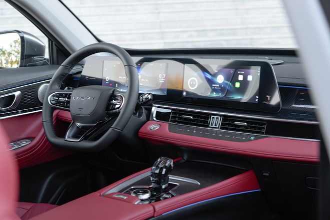 طراحی داخلی با دو صفحه نمایش 12.3 اینچی LCD و صفحه ابزار متصل به صفحه کنترل مرکزی است. همچنین یک فرمان چند منظوره جدید D شکل وجود دارد و سیستم اطلاعات سرگرمی با سیستم عامل Chery’s Lion 5.0 اجرا میشود.