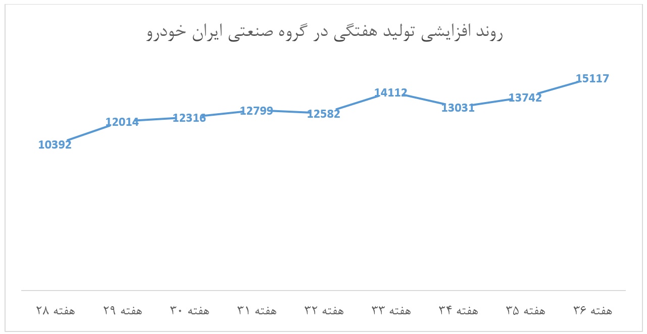 در هفته ۳۶ امسال نیز تولید خودرو کامل از مرز ۱۵ هزار دستگاه عبور کرده و دستیابی به عدد تولید هفتگی ۱۷ هزار دستگاه نیز به زودی رقم خواهد خورد.