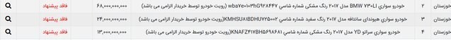 جدول شماره 3 خودروهای مزایده‌ای وارداتی