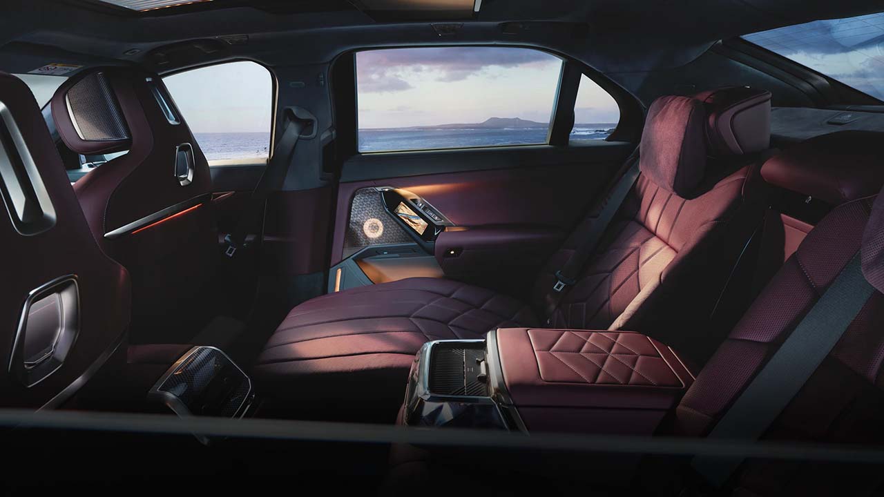 فضای مجلل کابین عقب ب ام و سری 7 کابین عقب نیز هیچ چیز کمتری از جلو ندارد حتی درخش دستگیره های درب نیز از نمایشگر استفاده شده در ادامه با کارایی منحصر به فرد این نمایشگر ها در شخصی سازی فضای کابین عقب بیشتر آشنا خواهیم شد.