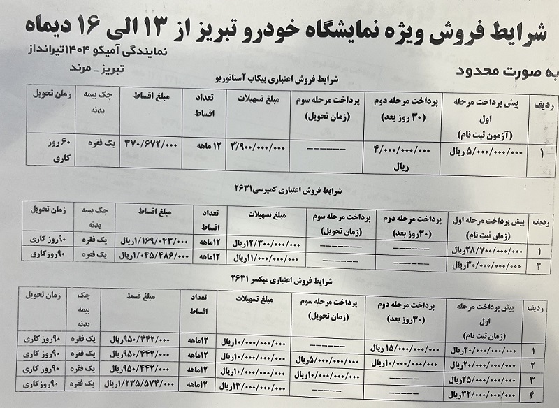 شرایط فروش آمیکو در نمایشگاه خودرو تبریز
