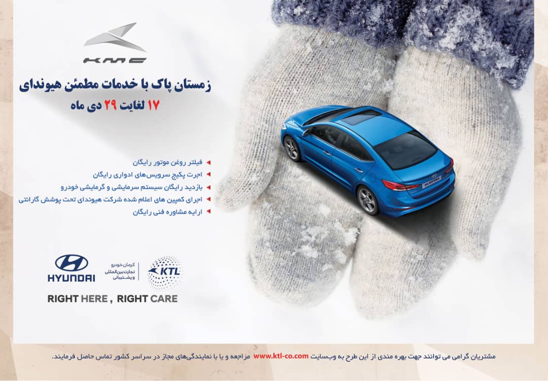 شرکت KTL به عنوان ارائه دهنده خدمات پس از فروش خودروهای هیوندای کره جنوبی طرح زمستان پاک با خدمات مطمئن هیوندای که از ۱۷دیماه آغاز شده بود تا ششم بهمن تمدید نمود.
