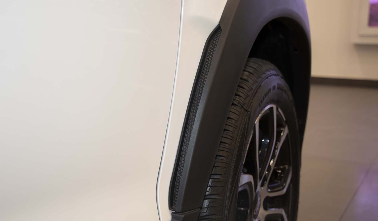 خط زیر دربدر عکس زیر میتوانید ببینید که ویلآرچ جلوی این خودرو پف کرده و اندکی بیرون زده است، و با استایلی آفرودی طراحی شدهاند.