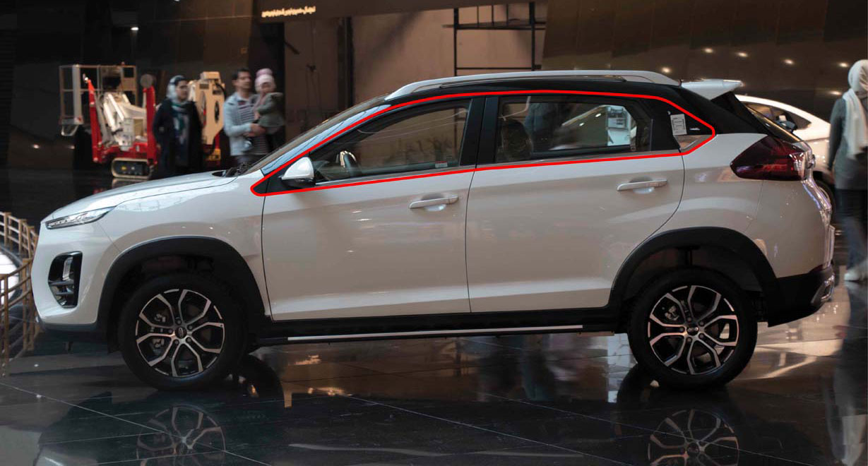 قطعهی پلاستیکی روی ستون Cو اگر این قطعه طراحی نمیشد، یک فاجعهی بصری را شاهد بودیم. در این بخش، یک قطعهی کرومی در انتها قرار گرفته است. این قطعهی کرومی درست در قسمت بلتلاین (Belt line) قرار گرفته و از زیر ستون A این خودرو شروع میگردد و با ظرافت هر چه تمام به سمت عقب این خودرو راهی میشود، و خود را به سمت لچکی و ستون C خودرو میرساند و در آنجا بسیار درشت و ضخیم میگردد.
