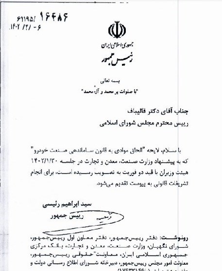پنجشنبه هفته گذشته، لایحهای برای الحاق موادی به قانون ساماندهی صنعت خودرو به مجلس تقدیم شد.