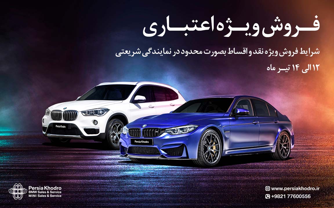 فروش ویژه ب ام و و مینی نقد و اقساط در نمایندگی پرشیا خودرو ۱۰۲ شریعتیمتقاضیان خرید در این طرح جهت بازدید از خودروهای موجود در جشنواره، میتوانند در روزهای ۱۲ تا ۱۴ تیرماه به محل نمایندگی ۱۰۲ پرشیا خودرو واقع در تهران، خیابان شریعتی، پایین تر از خیابان بهار شیراز، نبش کوچه گوهر مراجعه نموده و یا برای کسب اطلاعات بیشتر با شماره تلفن ۰۲۱۷۷۶۰۰۵۵۶ و ۰۹۱۲۸۴۰۷۶۱۱ تماس حاصل نمایند.