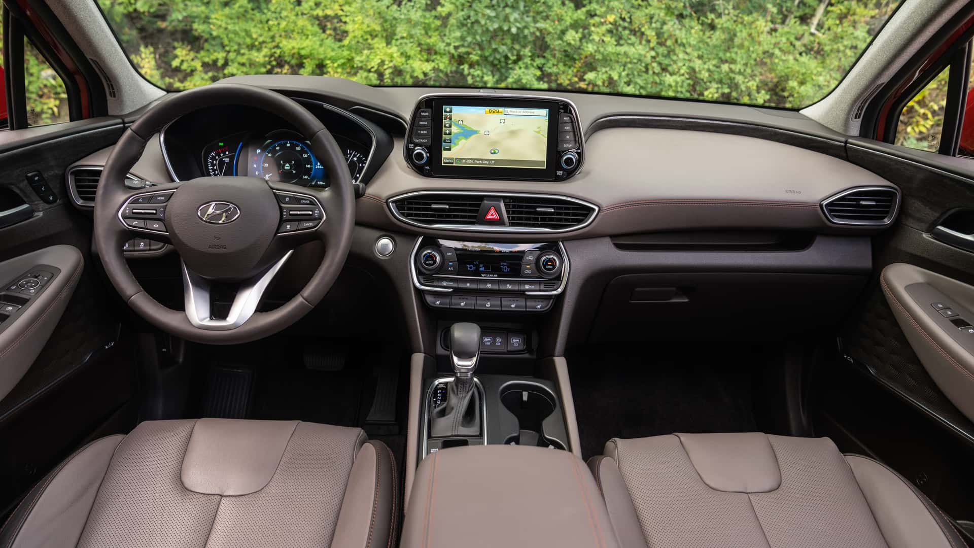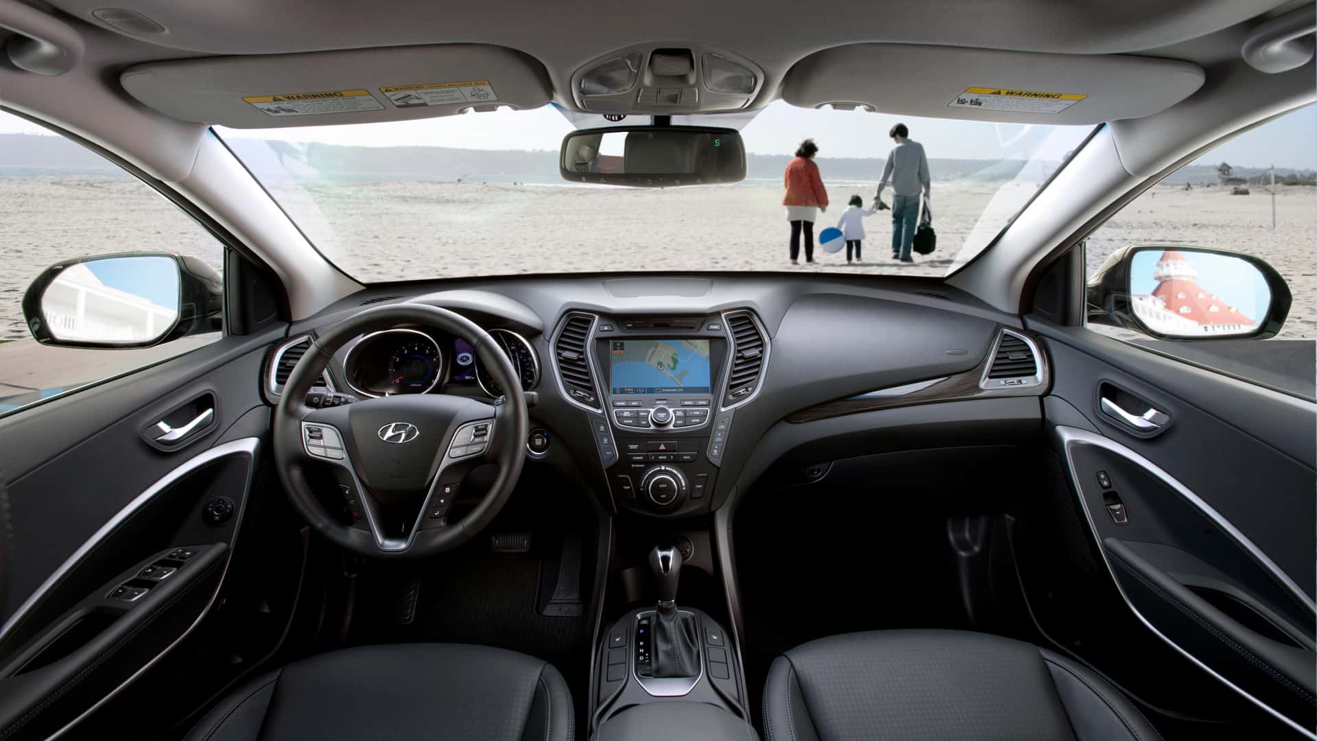 نسل چهارمدر نسل چهارم سانتافه، یک نمایشگر بزرگ به کابین خودرو اضافه شد اما همچنان کنترلرهای فیزیکی سرجای خودشان قرار داشتند. هیوندای سعی کرد تا برای خلق کابین نسل چهارم سانتافه، هر آنچه مشتریان در برندهای دیگر پیدا میکردند را به فضای داخلی این خودرو اضافه کند.