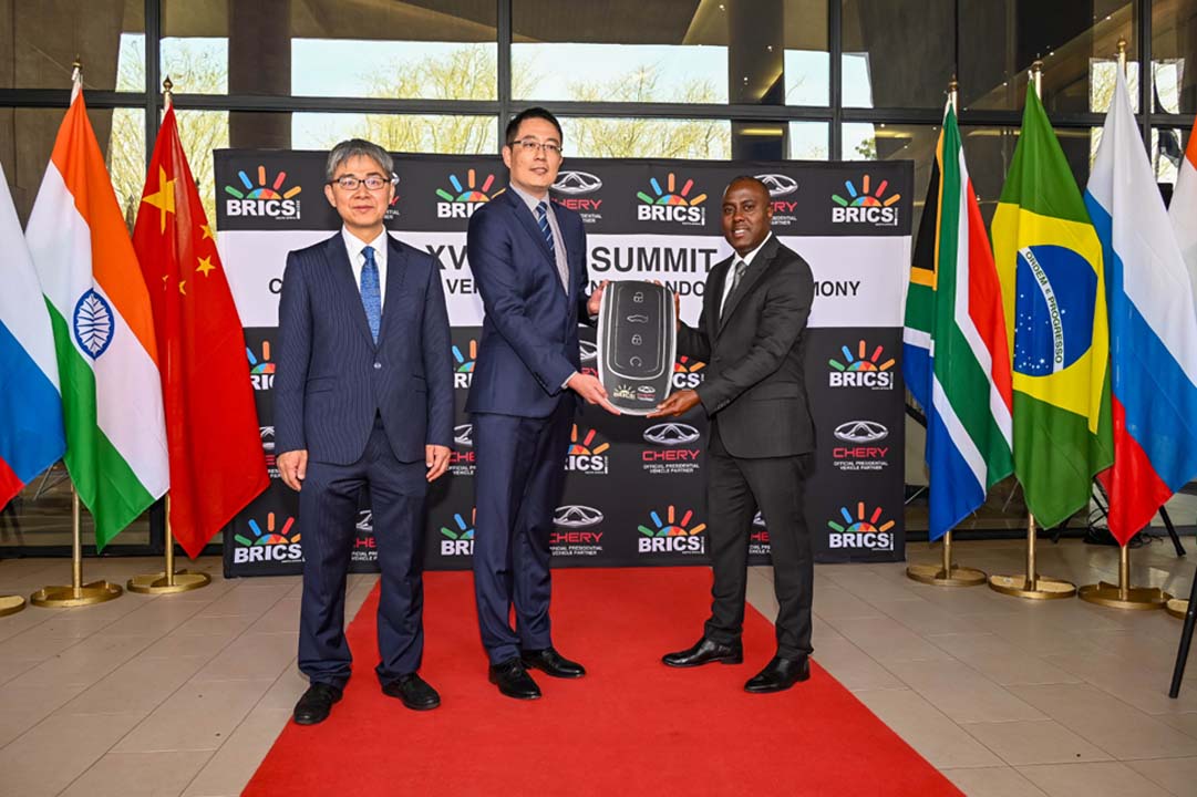 خودروی تیگو 8 پرو مکس برای نشست BRICS، بهعنوان وسیله نقلیه رسمی این رویداد انتخاب شده است. تیگو8 پرومکس با موتور توربو شارژ 2 لیتری قویترین مدل این محصول در بازار آفریقای جنوبی شناخته میشود. تیگو 8 پرو مکس با صندلیهای چرم، دریچههای مجزا تهویههوا برای هر سه ردیف صندلی، سیستم صوتی SONY که تجربهای مناسب در دنیای صدا محسوب میشود و همچنین کنترل مداوم سرعت با کمک رادار است که حس لوکس بودن را را به نمایندگان ارشد و مهمانان نشست BRICS ارائه مینماید. افزون بر این موارد، تیگو 8 پرو مکس دارای امکاناتی نظیر سیستم هشدار در صورت وجود مانع در اطراف خودرو برای افزایش ایمنی است.