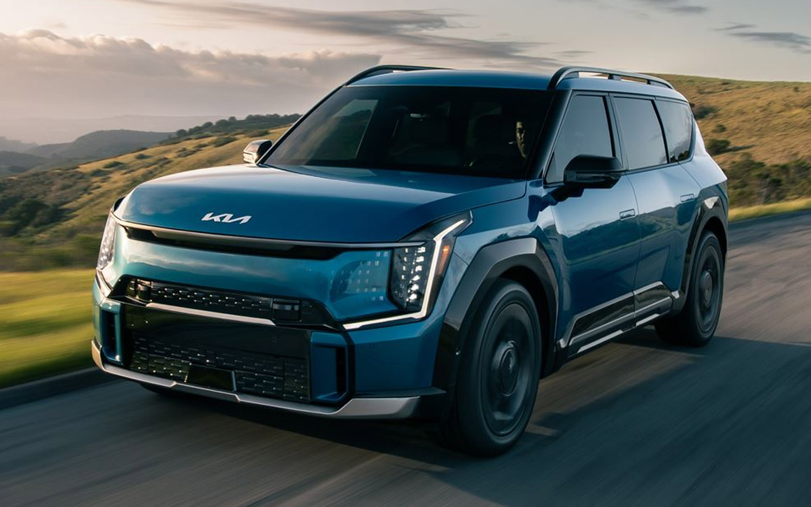 کیا EV9شاسیبلند EV9 نخستین خودروی تمام برقی کیا با سه ردیف صندلی است و فضای بسیار آسودهای را در اختیار سرنشینان قرار میدهد. ردیف وسط به صندلیهای کاپیتان مجهز هستند که با قابلیت چرخش ۱۸۰ درجه، به سرنشین امکان تعامل مستقیم با صندلیهای مجاور را میدهد. این خودرو به صورت دیفرانسیل عقب و دو دیفرانسیل در دسترس مشتریان اروپایی قرار میگیرد و باتری ۹۹.۸ کیلووات ساعتی آن، از محدوده پیمایشی ۵۷۸ کیلومتر پشتیبانی میکند. مدل دیفرانسیل عقب به یک موتور ۲۰۳ اسب بخاری مجهز است. مدلهای دودیفرانسیل قوای حرکتی خود را از پیشرانه الکتریکی ۳۸۳ اسب بخاری دریافت میکنند و در صورت شارژ کامل باتری، قادر به پیمایش ۵۳۲ کیلومتر هستند. شتاب صفر تا صد مدل تکدیفرانسیل در مدتزمان ۹.۲ ثانیه و شتاب مدلهای دودیفرانسیل در مدتزمان ۵.۳ ثانیه مدیریت میشود.