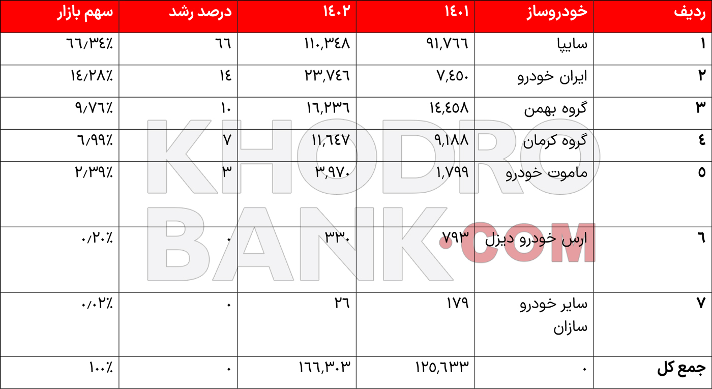 در این میان، شرکت سایپا با تولید ۱۱۰,۳۴۸ دستگاه خودروی پیکاپ، پیشتاز بازار بوده و سهم ۶۶.۳۴ درصدی را به خود اختصاص داده است. این رقم در مقایسه با تولید ۹۱,۷۶۶ دستگاه در سال ۱۴۰۱، رشدی ۶۶ درصدی را نشان میدهد که حاکی از عملکرد خوب این شرکت در این بخش است.