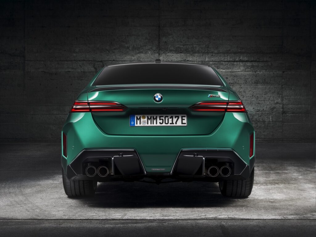 پشت گلگیرهای جلو، دریچههای عملکردی وجود دارد که بخشی از سیستم خنککننده خودرو را تشکیل میدهند و جریان هوا را به دو رادیاتور کمکی دور هدایت میکنند. عقب خودرو دارای اسپویلر عقب M و اگزوزهای دوقلوی کروم مشکی M است. همچنین آینههای آیرودینامیک و نشان M5 نصب شده روی ستون D را مشاهده خواهید کرد.