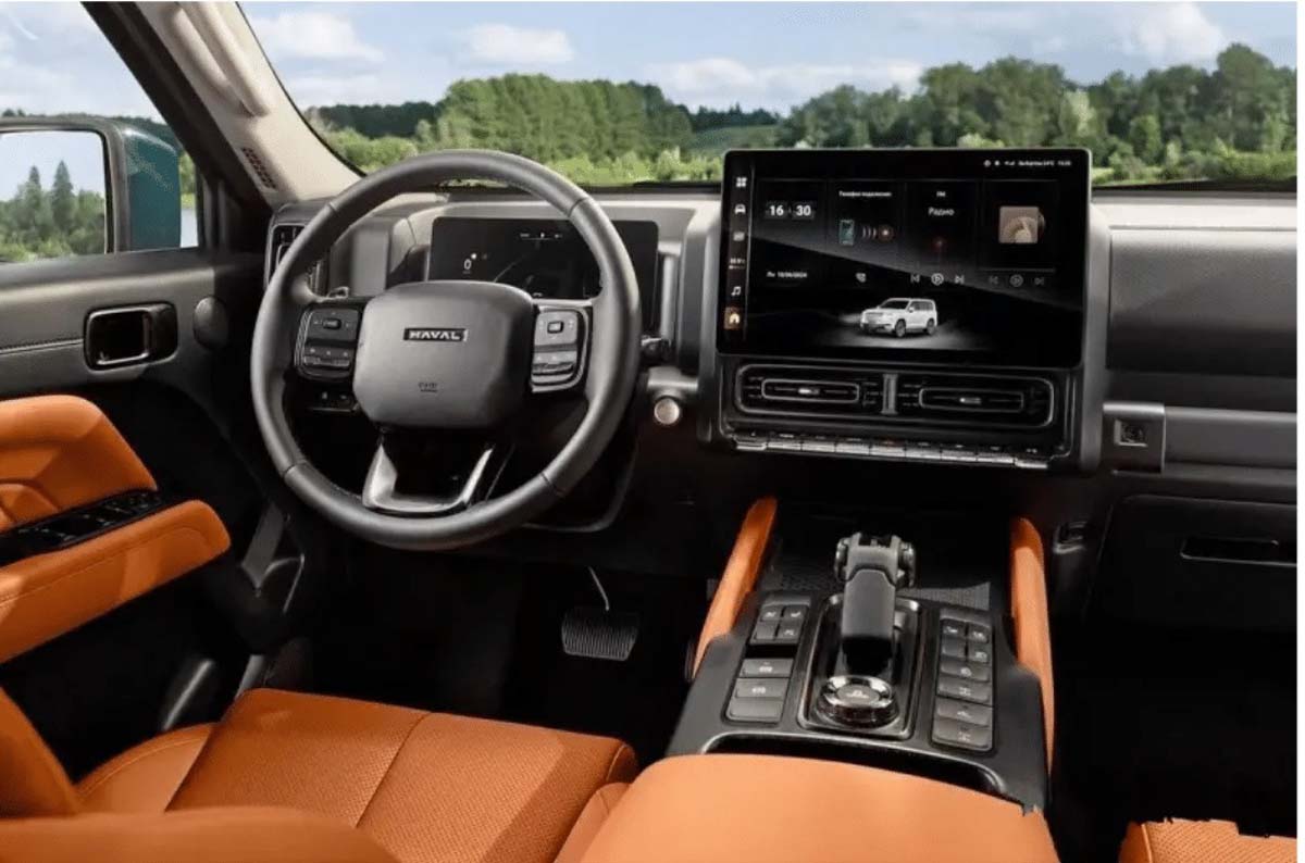 داخل خودرو هاوال H9 جدیددر داخل خودرو، کابین با نسخه داخلی کشور چین یکسان است. عناصری مانند فرمان بیضی شکل چهار پره، نمایشگر مرکزی شناور ۱۴.۶ اینچی بزرگ، دریچههای تهویه مطبوع مستطیلی شکل، اهرم دنده حجیم و تعداد زیادی دکمه فیزیکی وجود دارد. همچنین، نسخه خارجی هاوال H9 جدید نیز از چیدمان صندلی ۲+۳+۲ استفاده میکند.