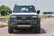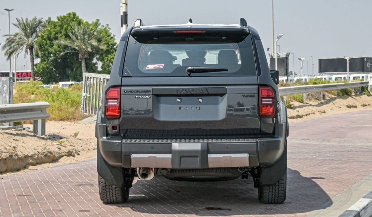طراحی خارجی پرادو ۲۰۲۵ یک بیانیه جسورانه و یک تغییر مسیر کامل نسبت به نسل پیشین است. خطوط صاف، زوایای تیز و بدنه جعبه‌ای شکل، نه‌تنها ظاهری قدرتمند و با ابهت به خودرو بخشیده، بلکه کاملاً کاربردی و منطبق بر اصول خودروهای آفرود اصیل است. در نسخه Adventure، این هویت ماجراجویانه با جزئیات بیشتری تقویت شده است. رینگ‌های ۱۸ اینچی آلومینیومی با تایرهای پهن ۲۶۵/۷۰، سپرهای نقره‌ای رنگ و محافظ‌های گلگیر مشکی، همگی بر آمادگی این خودرو برای خروج از جاده تأکید دارند. چراغ‌های جلوی LED با طراحی افقی و جلوپنجره مستطیلی با نوشته کلاسیک "TOYOTA"، امضای بصری این نسل را تشکیل می‌دهند. وجود ریل‌های سقفی و قلاب‌های یدک‌کش در جلو و عقب نیز نشان می‌دهد که پرادو برای حمل بار و انجام وظایف سنگین کاملاً آماده است.