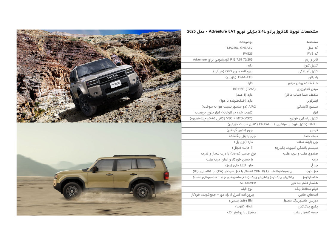 تویوتا لندکروز پرادو ۲۰۲۵ با زرین تجارت به سیما در ایران + کاتالوگ