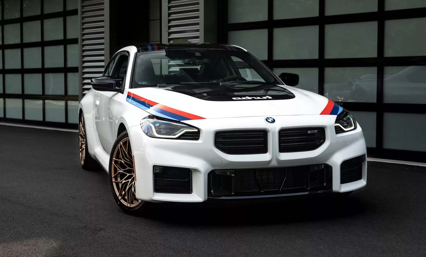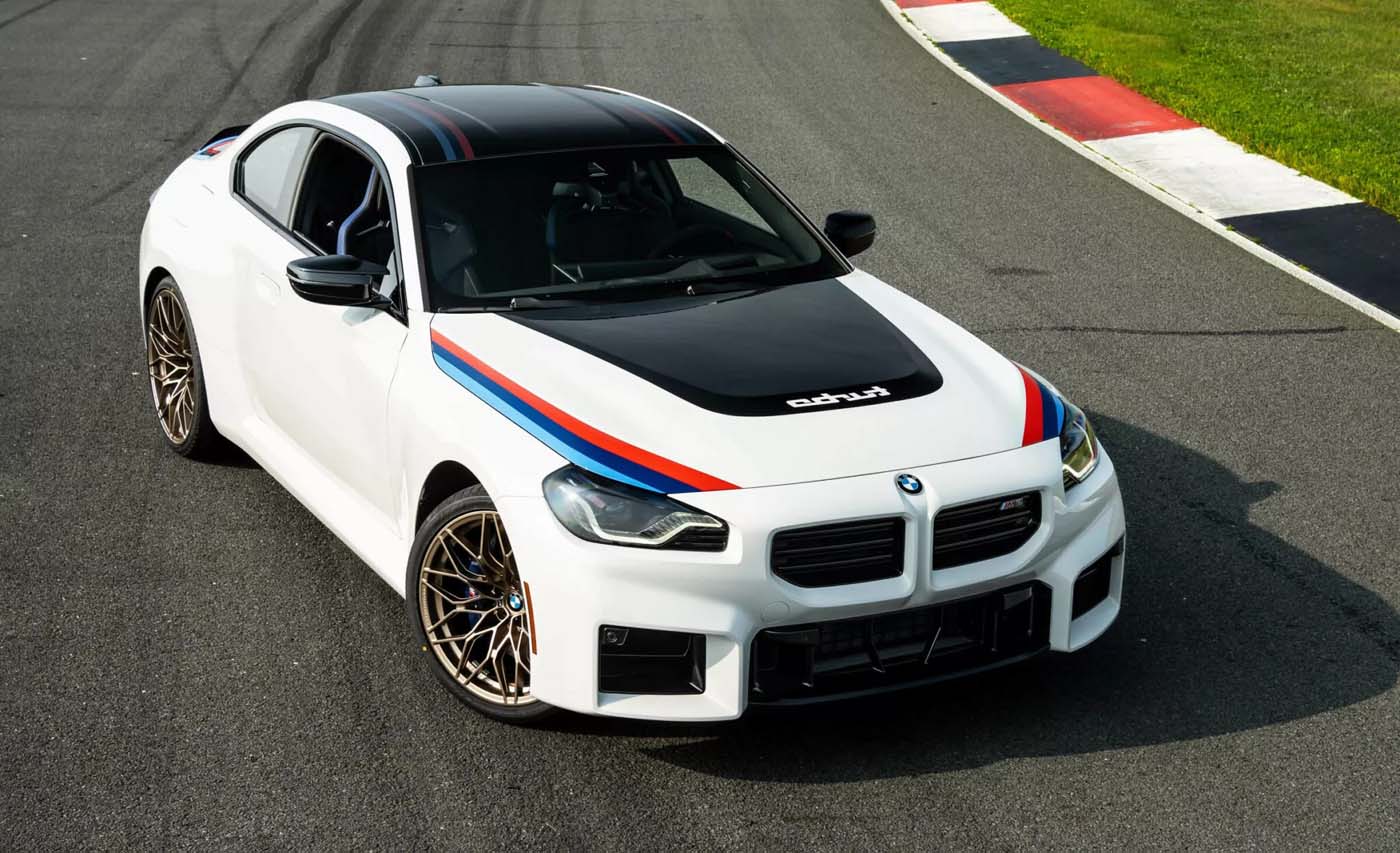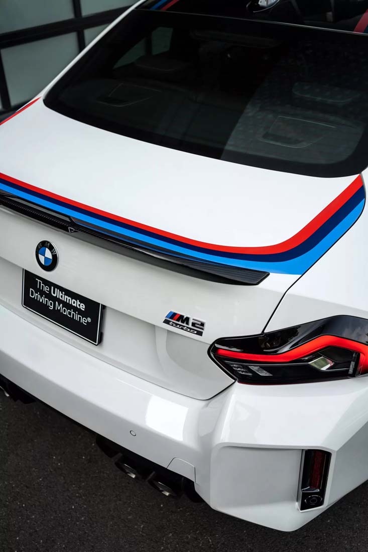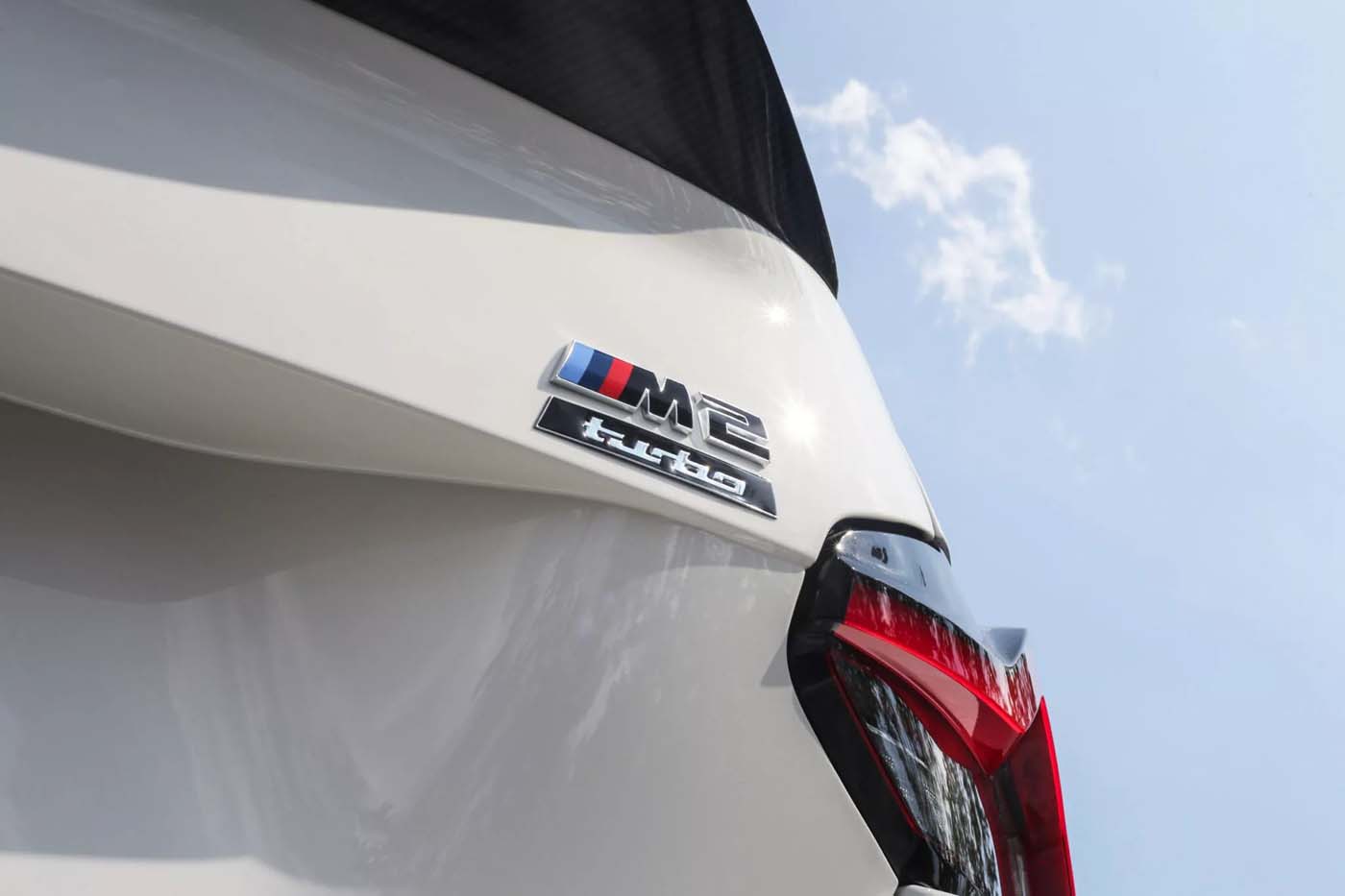 تمامی نمونههای این مدل با رنگ سفید آلپاین و سقف کربنی عرضه میشوند. این سقف کربنی که در M2 معمولی یک آپشن ۲,۶۰۰ دلاری است، در این نسخه با نوارهای رنگی M (از جلو تا عقب) متمایز شده است. نوارهای M روی کاپوت و صندوق عقب نیز وجود دارند که به گفته بامو، نقاشی آنها با دست انجام شده و بخشی از دلیل این افزایش قیمت را توجیه میکند.