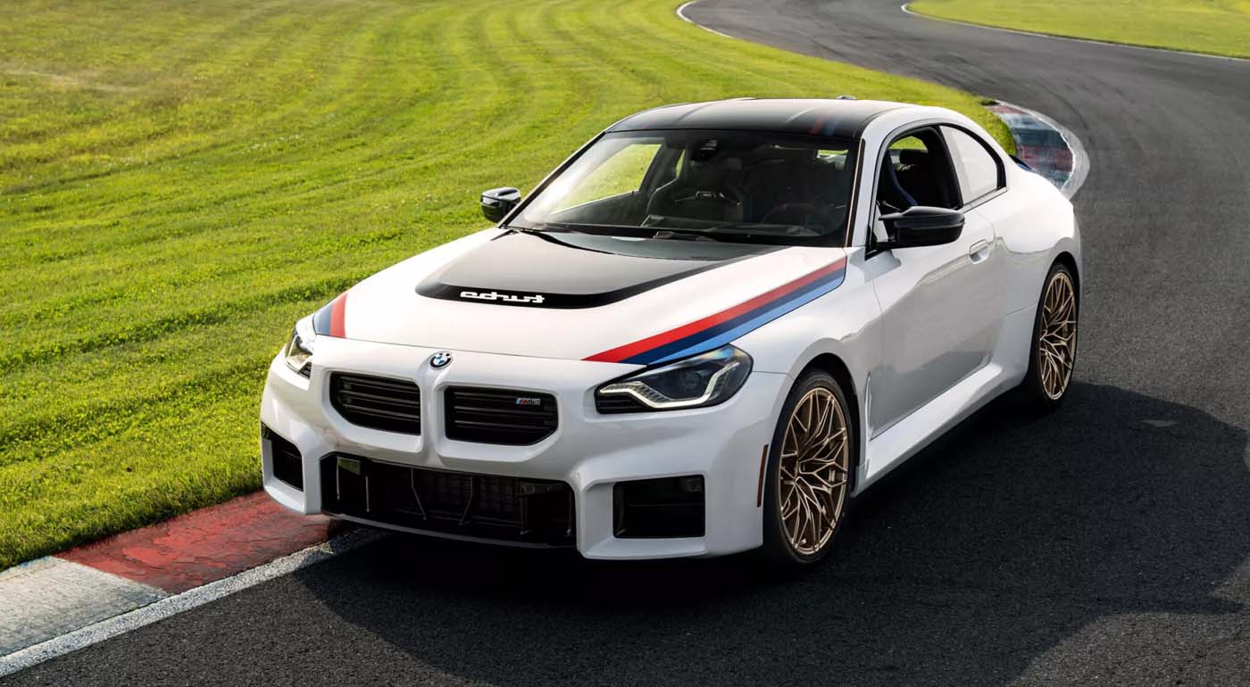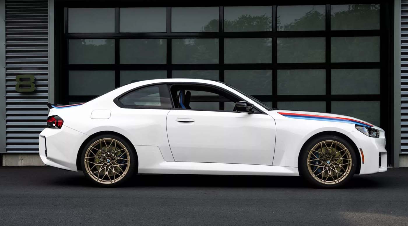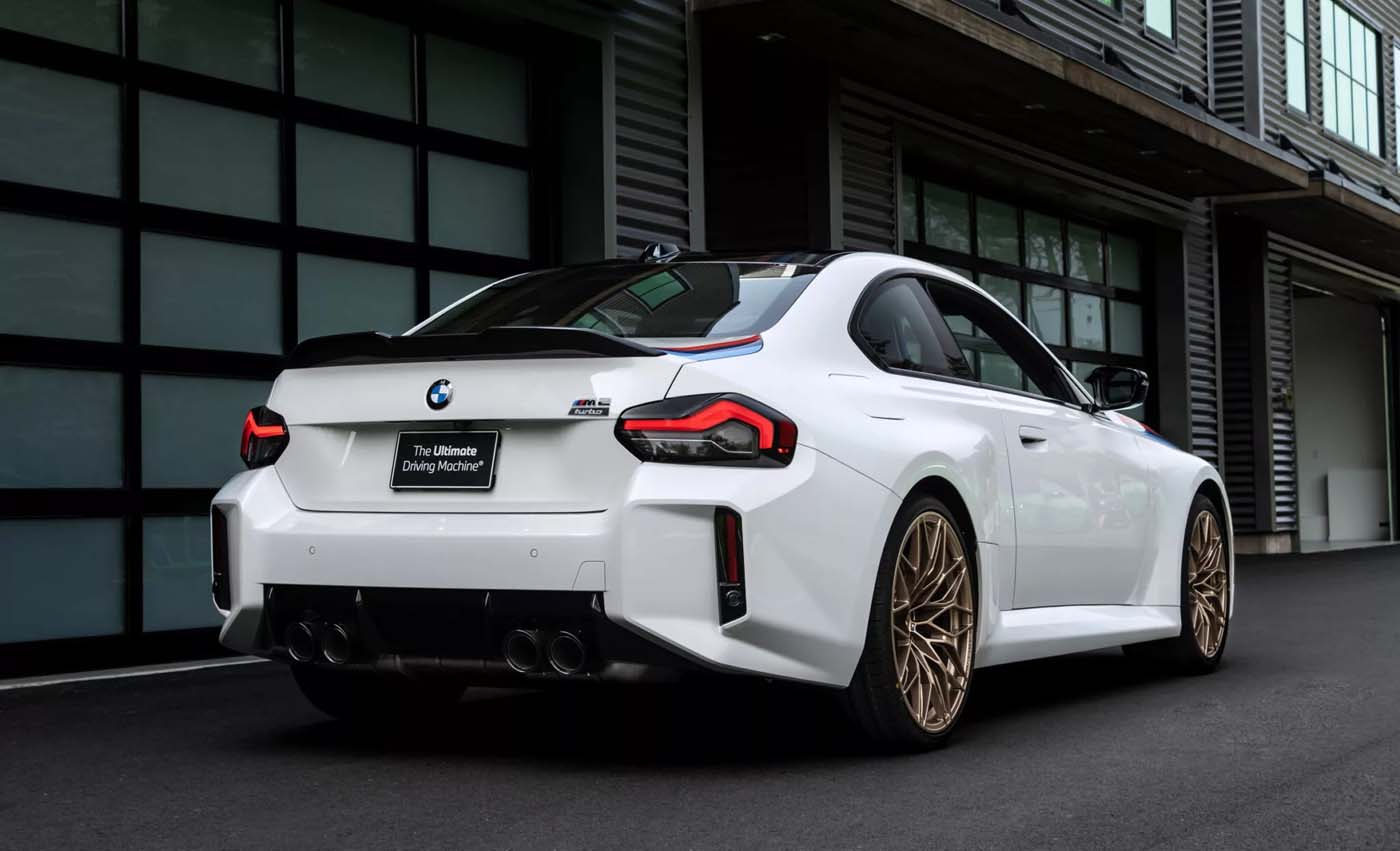 تمامی نمونههای این مدل با رنگ سفید آلپاین و سقف کربنی عرضه میشوند. این سقف کربنی که در M2 معمولی یک آپشن ۲,۶۰۰ دلاری است، در این نسخه با نوارهای رنگی M (از جلو تا عقب) متمایز شده است. نوارهای M روی کاپوت و صندوق عقب نیز وجود دارند که به گفته بامو، نقاشی آنها با دست انجام شده و بخشی از دلیل این افزایش قیمت را توجیه میکند.