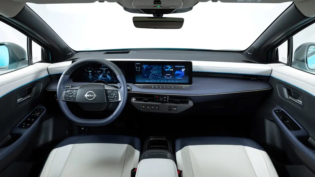 نیسان لیفآیرودینامیک و مدیریت حرارتی از جمله موارد کلیدی در طراحی بودند، که شامل زیربدنه آببندیشده، دستگیره درهای جمعشونده و جلوپنجره فعال بودند که ضریب درگ ۰.۲۵ را به ارمغان میآورند. چهار تیپ در دسترس هستند، که اولین آنها یعنی اینگیج برای ناوگانها طراحی شده است. تریمهای بالاتر، سیستم چندرسانهای مبتنی بر گوگل، نمایشگر هدآپ، دو صفحه نمایش ۱۴.۳ اینچی، سقف شیشهای و سیستم صوتی بوز با بلندگوهای پشتسری را ارائه میدهند.