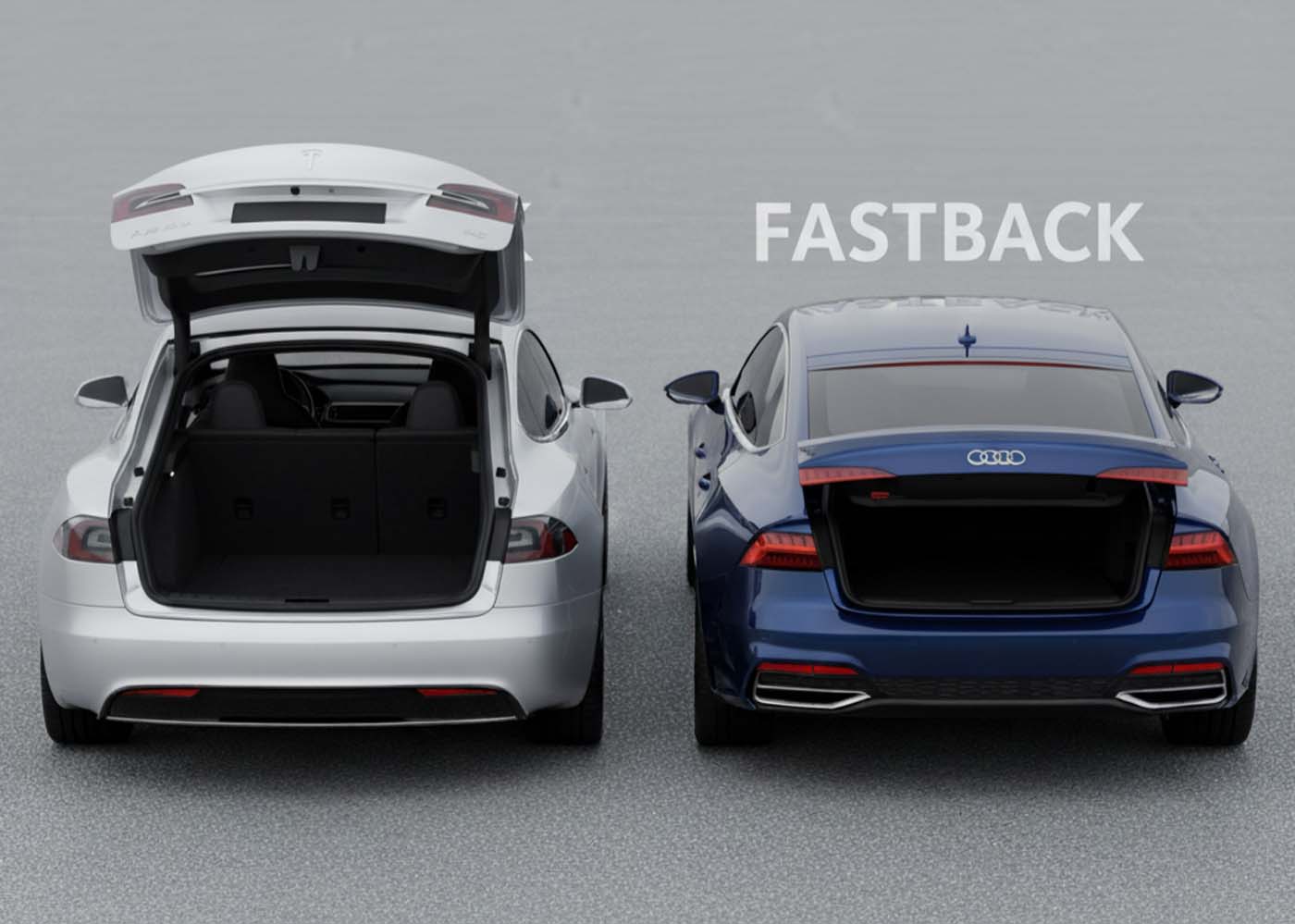 اصطلاح فستبک اشارهای مستقیم به پروفیل جانبی خودرو دارد و لزوماً تعیینکننده نحوه دسترسی به فضای بار نیست. در یک تعریف سختگیرانه مهندسی، فستبک خودرویی است که خط سقف آن با شیبی ملایم و پیوسته (Uninterrupted Slope) از بالای شیشه جلو آغاز شده و بدون شکستگی زاویهای محسوس تا منتهیالیه عقب خودرو ادامه مییابد.