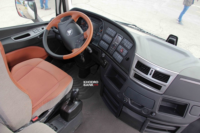 وظیفه انتقال این نیرو بر عهده یک گیربکس اتوماتیک ۱۲ دنده ساخت شرکت آلمانی ZF (مدل TraXon) است که مجهز به ریتاردر هیدرولیکی ۵ مرحلهای میباشد. استفاده از گیربکس ZF ترکسون یکی از نقاط قوت اصلی این خودرو است که تعویض دندههای هوشمند و استهلاک پایینتری نسبت به گیربکسهای دستی یا مدلهای قدیمیتر چینی دارد. سیستم تعلیق محور جلو از نوع فنر پارابولیک به همراه کمک فنر هیدرو تلسکوپی و میل موجگیر است و در محور عقب از سیستم تعلیق بادی با ۴ بالشتک هوا استفاده شده که قابلیت تنظیم ارتفاع از داخل کابین را فراهم میکند. این ترکیب سواری نرمتری را نسبت به نسلهای قدیمی فوتون (مدل ۴۲۰ یا ۴۴۰) ارائه میدهد.